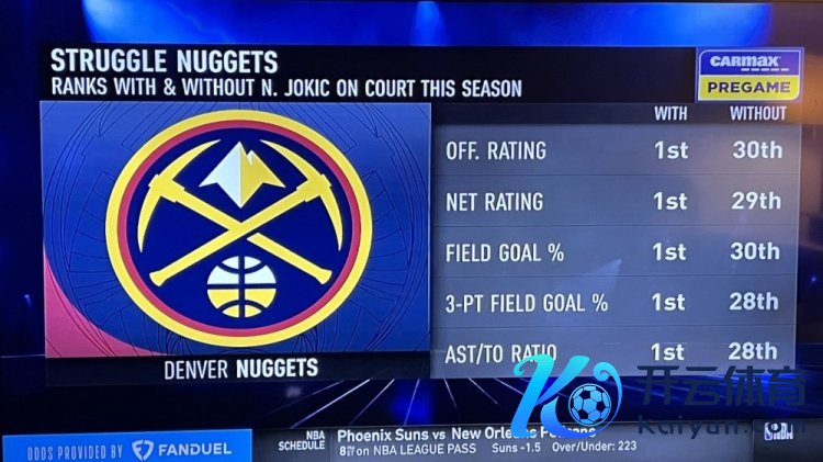 约基奇在场和不在场掘金蹙迫数据对比: