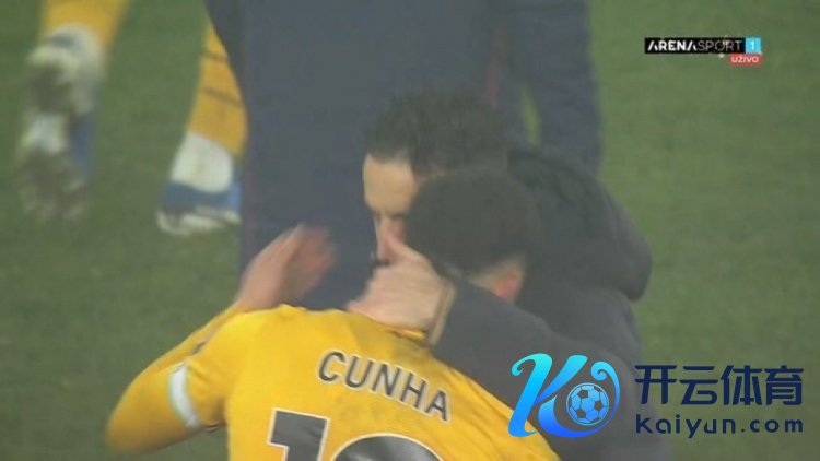 比赛胁制之后,曼联主帅阿莫林与库尼亚这位狼队前卫拥抱谜语。